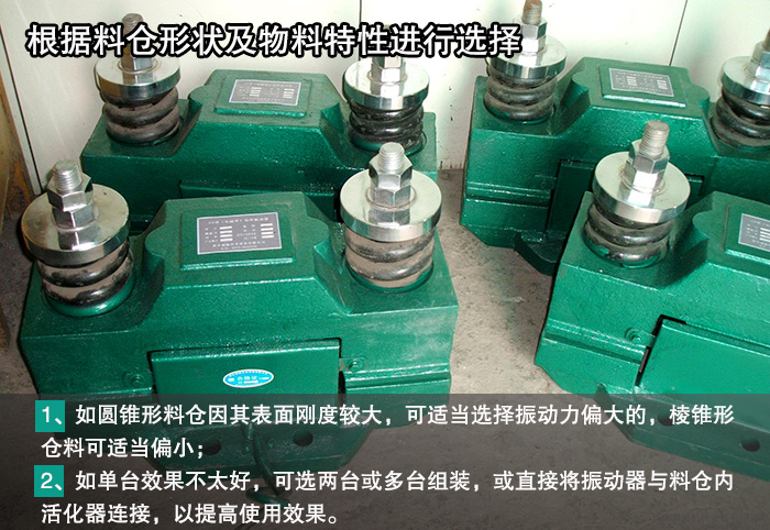 如單臺效果不太好,可選兩臺或多臺組裝,或直接將振動器與料倉內活化器連接,以提高使用效果。