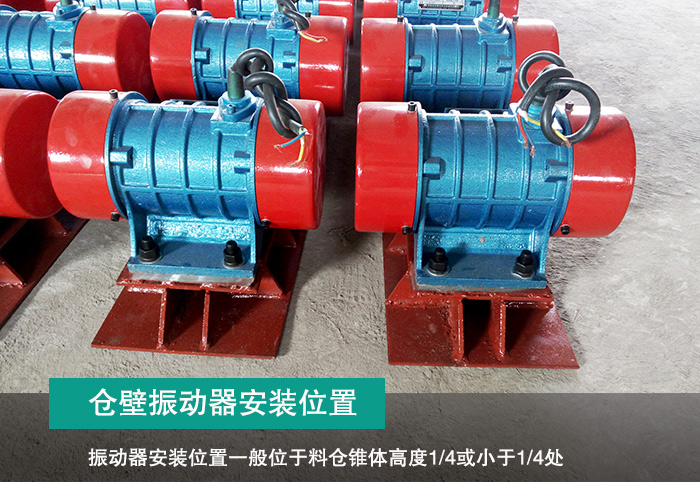 振動器安裝位置一般位于料倉錐體高度1/4或小于1/4處。