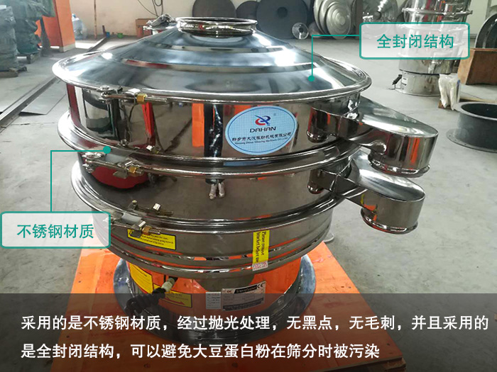 大豆蛋白粉不銹鋼旋振篩采用的是不銹鋼材質(zhì),經(jīng)過拋光處理,無黑點(diǎn),無毛刺,能夠有效的完成篩分作業(yè);并且采用的是全封閉結(jié)構(gòu),可以避免大豆蛋白粉在篩分時(shí)被污染。