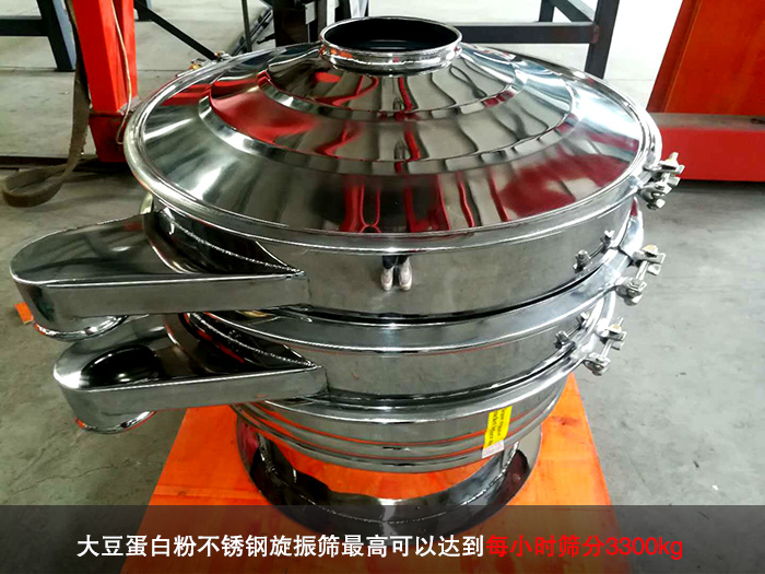 大豆蛋白粉不銹鋼旋振篩高可以達(dá)到每小時(shí)篩分3300kg,能夠滿足用戶在篩分時(shí)所需要的產(chǎn)量要求,篩分產(chǎn)量非常大。