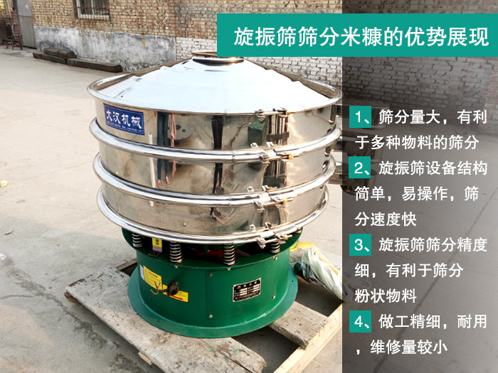米糠(現行國家標準米糠)主要是由果皮、種皮、外胚乳、糊粉層和胚加工制成的,因此在加工過程中會混進少量的稻殼和一定量的灰塵和微生物,所以只能用于飼料,是稻谷加工的主要副產品。米糠篩分精細,精細篩分振動篩中旋振篩比較適合米糠篩分