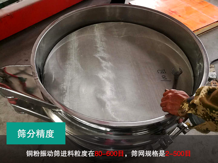 銅粉振動篩進料粒度在80-600目,篩網規格是2-500目,因此銅粉振動篩的篩分精度比較細,篩分效果比較好,同樣說明篩面的長度和寬度比較長,長度影響篩分精度,越長篩分精度越高,因此價格也會有所變化