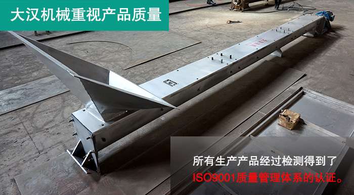 例如:大漢U型螺旋輸送機(jī)在材質(zhì)選用上都會根據(jù)用戶的物料需求進(jìn)行選用合格的材質(zhì)生產(chǎn),大漢機(jī)械生產(chǎn)的每臺U型螺旋輸送機(jī)都是經(jīng)過層層把關(guān),在嚴(yán)格審查中生產(chǎn)制造的,且經(jīng)過檢測得到了ISO9001質(zhì)量管理體系的認(rèn)證。