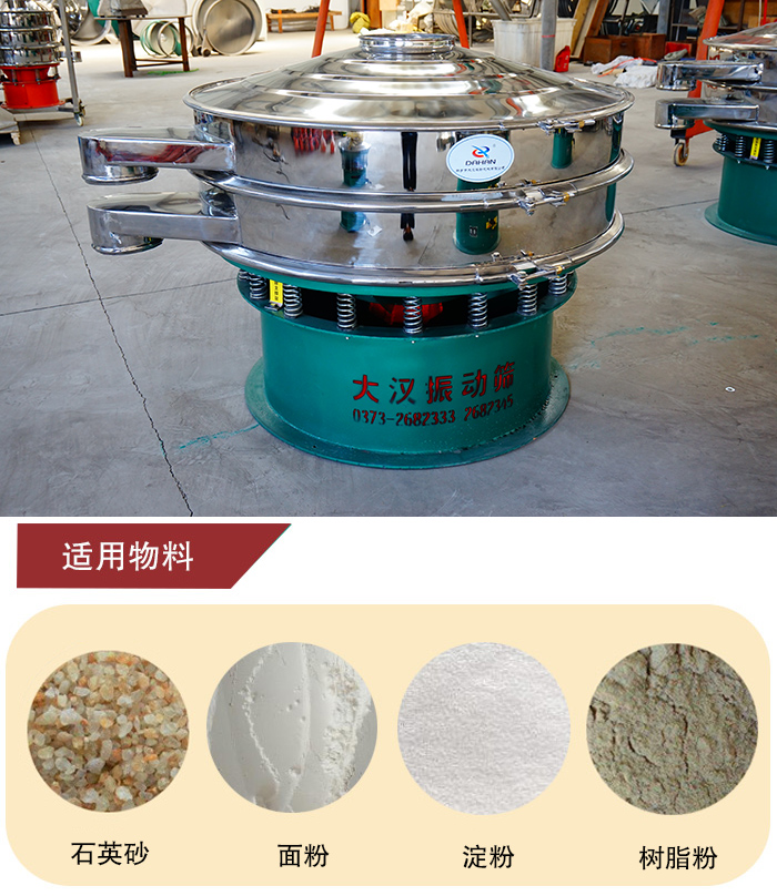 不銹鋼旋振篩可應用在食品行業:面粉、奶粉、淀粉、魚粉、米粉、維生素、調味品、糊精、飲料、果汁、砂糖、醬油、鳳梨汁、酵母液