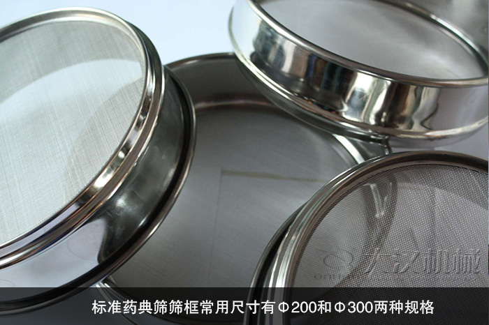 標(biāo)準(zhǔn)藥典篩簡稱藥典篩、標(biāo)準(zhǔn)藥篩,是指按《中國藥典》規(guī)定,全國統(tǒng)一規(guī)格的用于藥劑生產(chǎn)的篩,分為金屬絲編織網(wǎng)藥典篩和金屬?zèng)_孔板藥典篩。標(biāo)準(zhǔn)藥典篩篩框常用尺寸有Φ200和Φ300兩種規(guī)格,其中Φ200系列篩框應(yīng)用為廣泛。這種藥典篩既可以手篩,為提高效率還可以與振篩機(jī)配合使用。