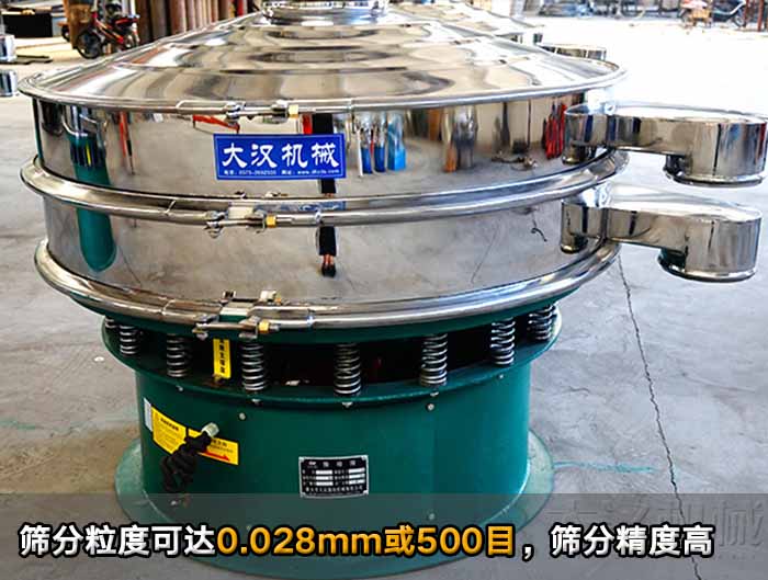 不銹鋼振動(dòng)篩篩分粒度可達(dá)0.028mm或500目,篩分精度高,出料口方向可任意調(diào)整,粗、細(xì)料自動(dòng)排出,可自動(dòng)化或人工作業(yè)