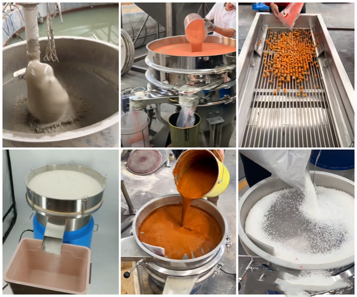 香料廠高粘性物料篩分:定制的不銹鋼直排篩創新設計復頻疊層激振系統:下層篩面 3000 次 / 分鐘高頻擊碎粘附顆粒,上層 1500 次 / 分鐘低頻加速分層,配合聚氨酯彈性篩網,徹底解決堵網問題。