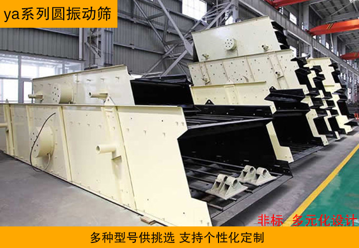 ya系列圓振動篩提供多種型號供客戶選擇,另為滿足客戶個性化需求,也可按照客戶所篩物料產量、特性、實際使用情況制定靈活多樣的設計方案,進行特殊設計制造。