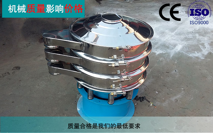 合金粉振動篩質(zhì)量已經(jīng)通過了ISO9001國際質(zhì)量體系認(rèn)證和歐盟CE雙認(rèn)證,用戶大可放心購買。