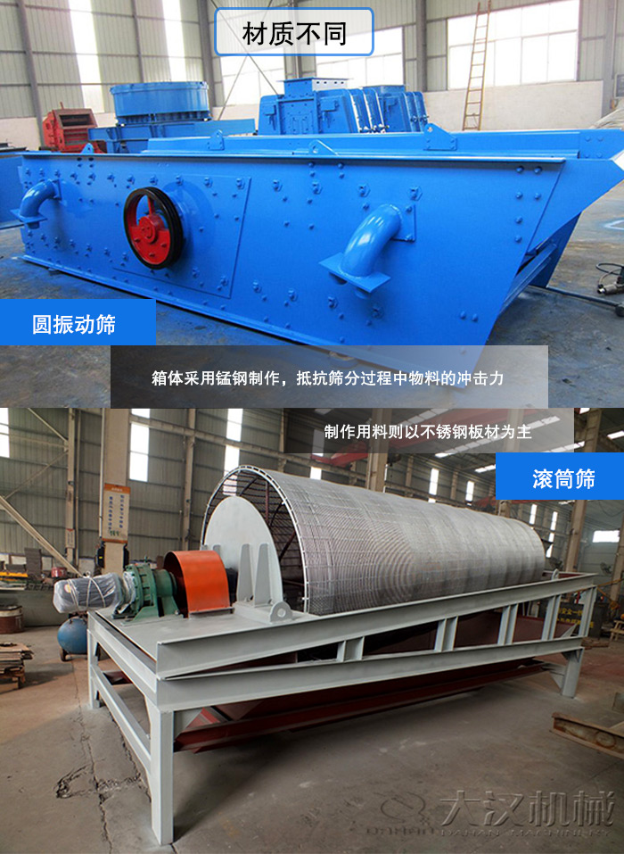 圓振篩制作時使用的板材較厚,箱體采用錳鋼制作,是為了抵抗篩分過程中物料的沖擊力