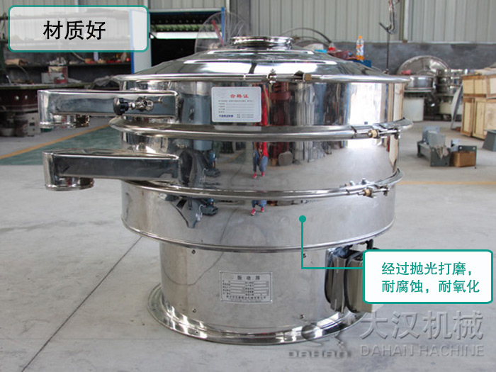 旋振篩是一種高精度細粉分級振動篩,制作過程中材質選擇用304不銹鋼材質,底座為碳鋼材質,不銹鋼材質經過拋光打磨,耐腐蝕,耐氧化