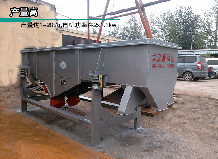 直線振動篩篩分食鹽產量一般在1-20t,電機功率在2x1.1kw