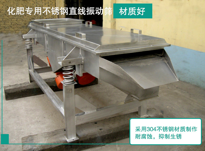 化肥專用不銹鋼直線振動篩采用304不銹鋼材質(zhì)制作,耐腐蝕,抑制生銹