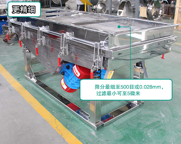 不銹鋼振動(dòng)篩篩分細(xì)至500目或0.028mm, 過(guò)濾小可至5微米。