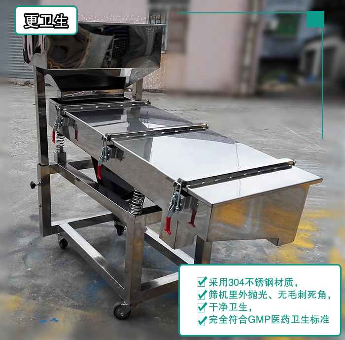 不銹鋼振動(dòng)篩采用304不銹鋼材質(zhì),篩機(jī)里外拋光、干凈衛(wèi)生,無(wú)毛刺死角,干凈衛(wèi)生,完全符合醫(yī)藥衛(wèi)生標(biāo)準(zhǔn)。