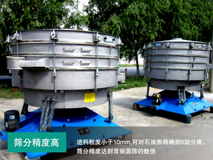 搖擺篩篩分石油焦進料粒度小于10mm,可對石油焦到6級分離,篩分精度達到常規圓篩的數倍