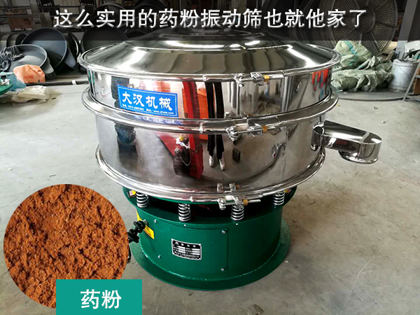 藥粉篩分用什么?藥粉在生產過程中不能有雜質的污染,進而保證藥品安全和藥品質量。按照這個要求藥粉振動篩分機得有針對性的特點設計。所有和藥品以及食品有關的機械設備都符合國內的衛生安全認證,藥粉振動篩分機也不例外,大漢機械生產的藥粉振動篩就是通過認證的廠家