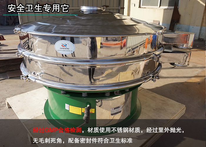 大漢機械藥粉振動篩生產經過合格檢測,材質使用不銹鋼材質,經過里外拋光,無毛刺死角,配備密封件符合衛生標準